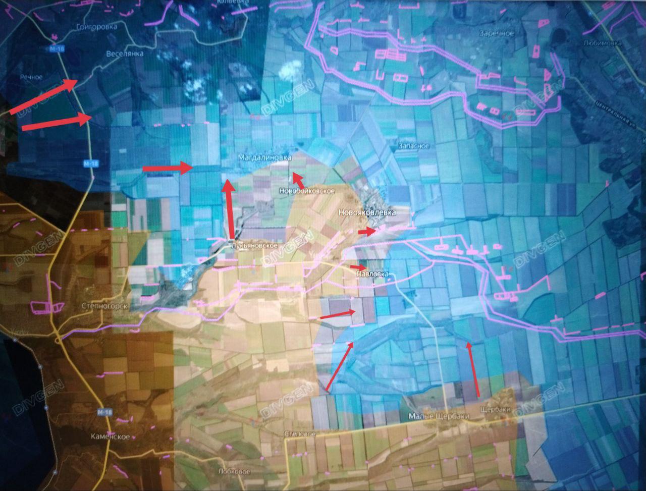 Всё явственнее вырисовывается угроза выхода ГрВ "Днепр" к западному логистическому маршруту к Орехову со стороны Запорожья.