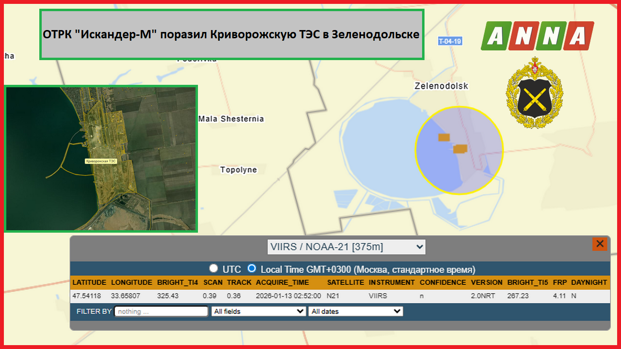 Российские военные с помощью оперативно-тактического ракетного комплекса «Искандер-М» поразили Криворожскую ТЭС в Днепропетровской области.