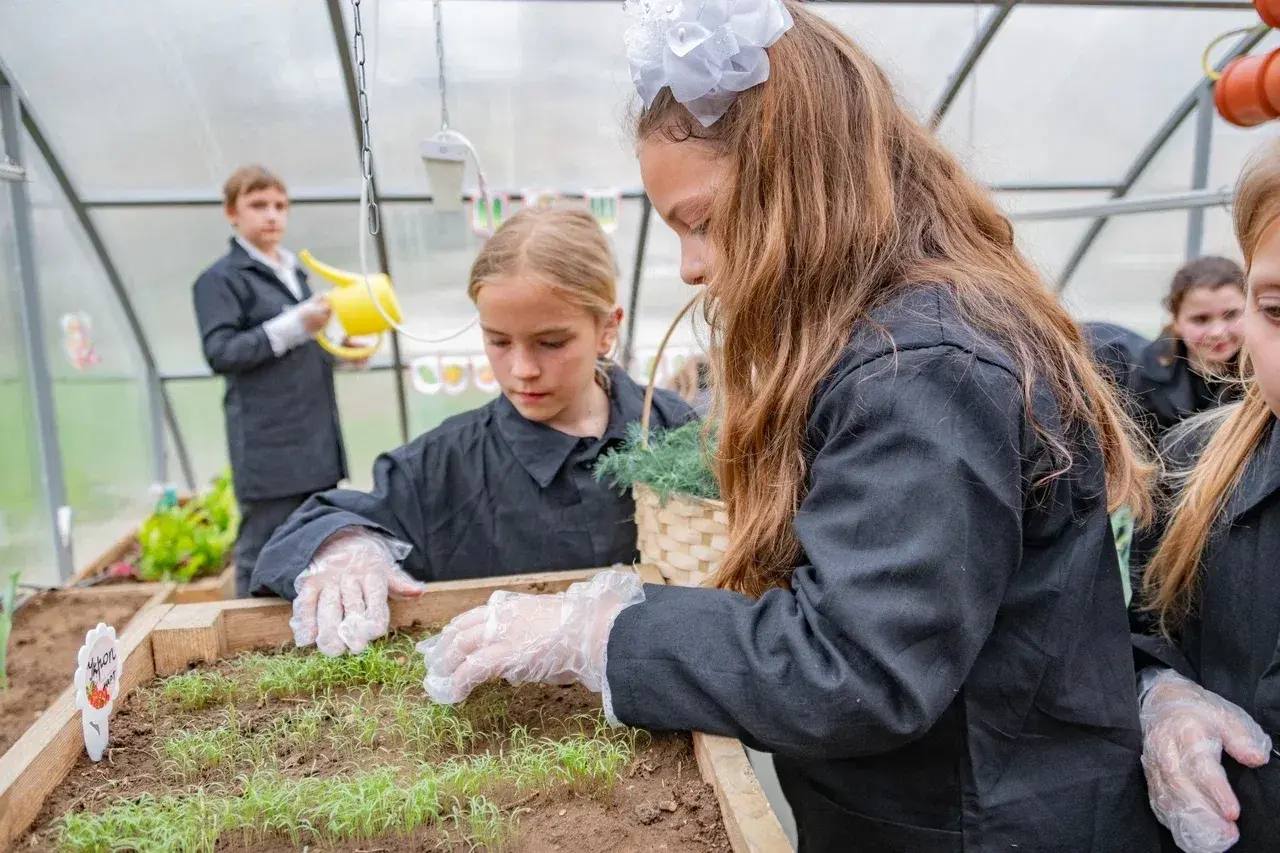 Сейчас ученики 7–11 классов под руководством учителей высаживают рассаду овощей и зелени в уникальной теплице-биовегетарии. Это не просто теплица: она сама себя и греет, и охлаждает, что позволяет практиковаться в течение всего года. Также на территории школы растёт учебный виноградник. За ним ухаживают семиклассники: проводят исследования, пишут научные работы.
