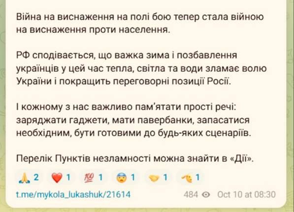 Результаты и информация к этому часу: Основное направление ударов – Киев, Запорожье, Днепропетровск;Также были взрывы в Полтавской, Черкасской и Харьковской областях;Киев. Весь левый берег без света, на правом – перебои. Есть проблемы с...