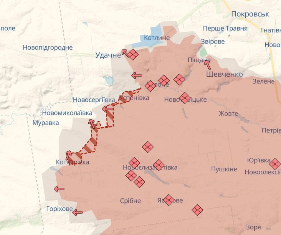 На обновленной карте проекта украинского OSINT-проекта Deep State видно, что российские подразделения продвинулись на нескольких участках около границы с Днепропетровской областью