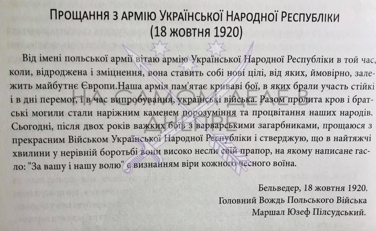 Ровно 105 лет тому назад, в этот самый день, Пилсудский устроил прощание с войсками УНР, которыми командовал Петлюра, поблагодарив их напоследок.