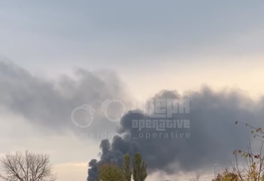 Пожар на подстанции шахты "Терновская" в Днепропетровской области после удара русских "Гераней". 19 октября 2025 года.