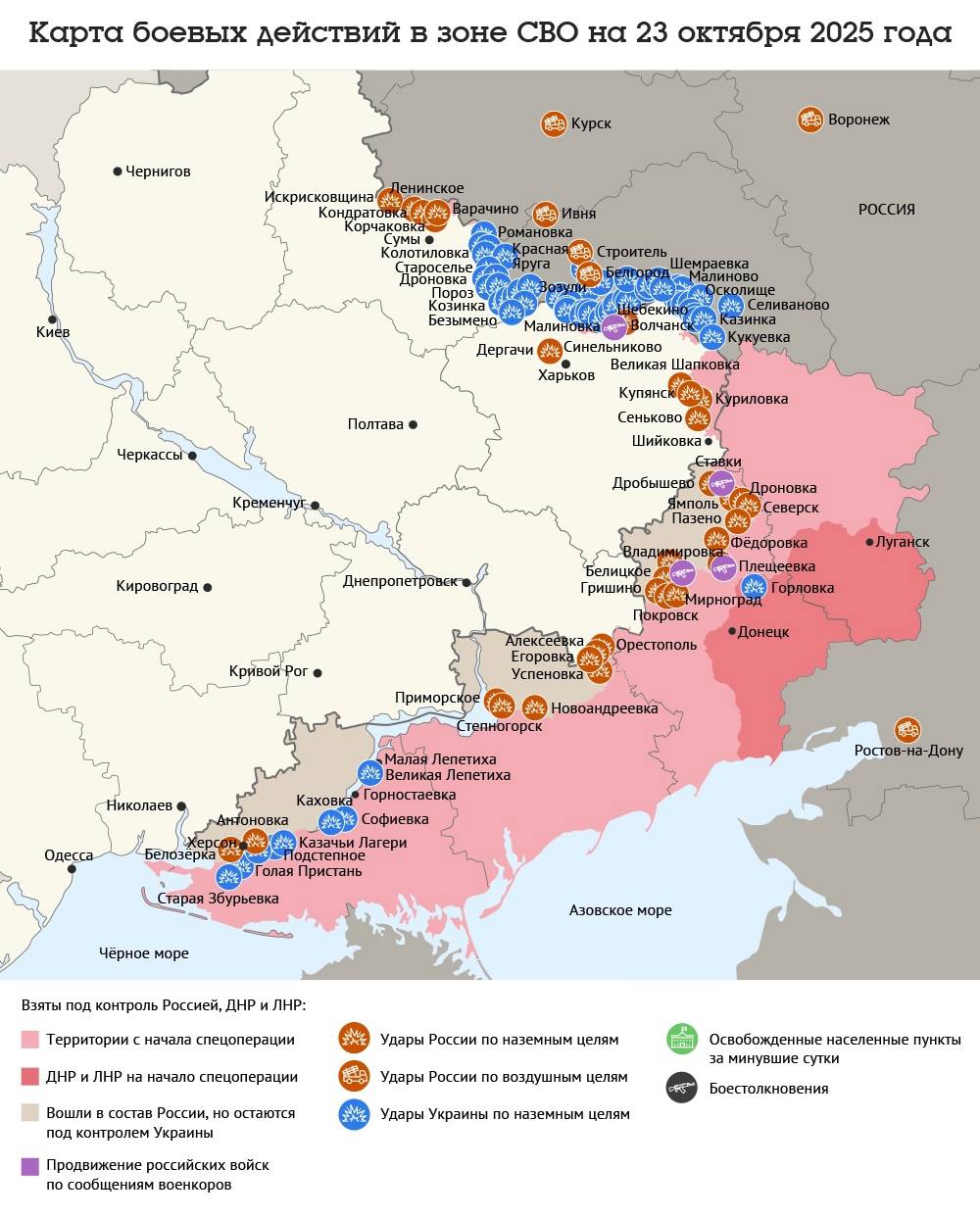 Карта боевых действий в зоне СВО на 23 октября 2025 года