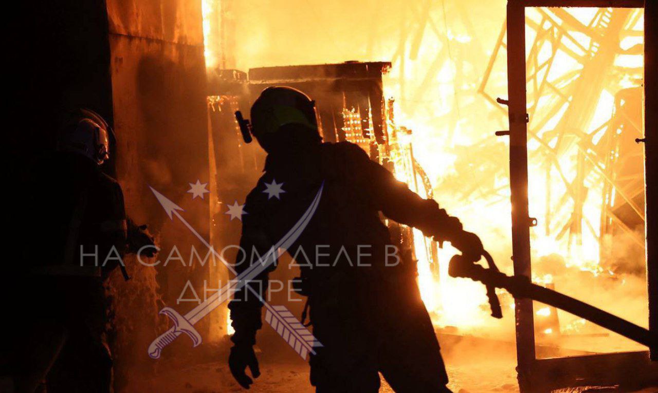 В Днепропетровске, в результате ночной атаки возник пожар на территории одного из предприятий.