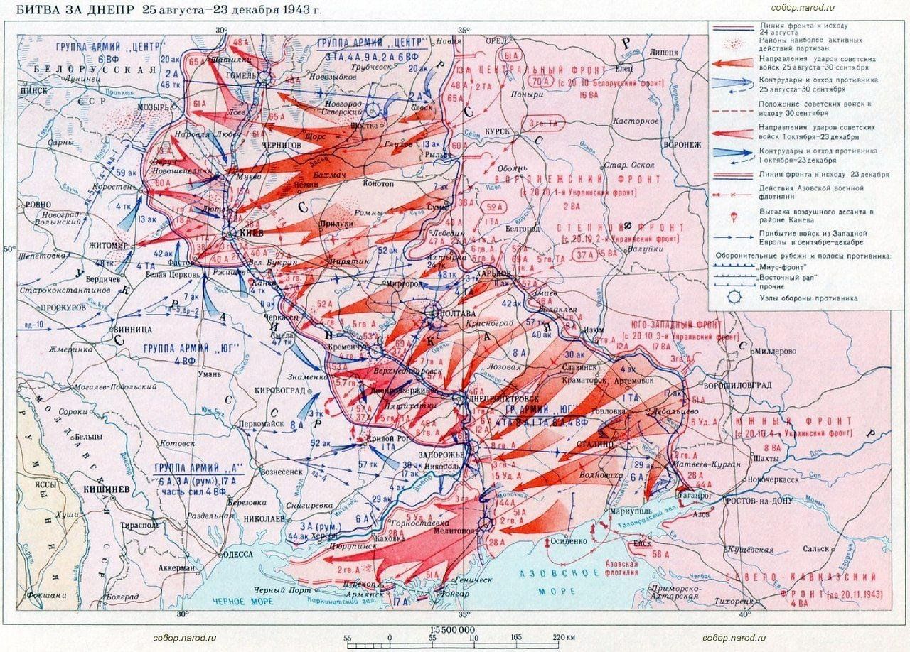 Битва за Днепр — комплекс операций советской армии по освобождению Левобережной Украины от фашистских захватчиков, проводившихся с 26 августа по 23 декабря 1943 года. Битва за Днепр имела целью освобождение левых берегов Днепра, земель Украины, Донбасса, форсирование реки Днепр и захват стратегически важных объектов и территорий.