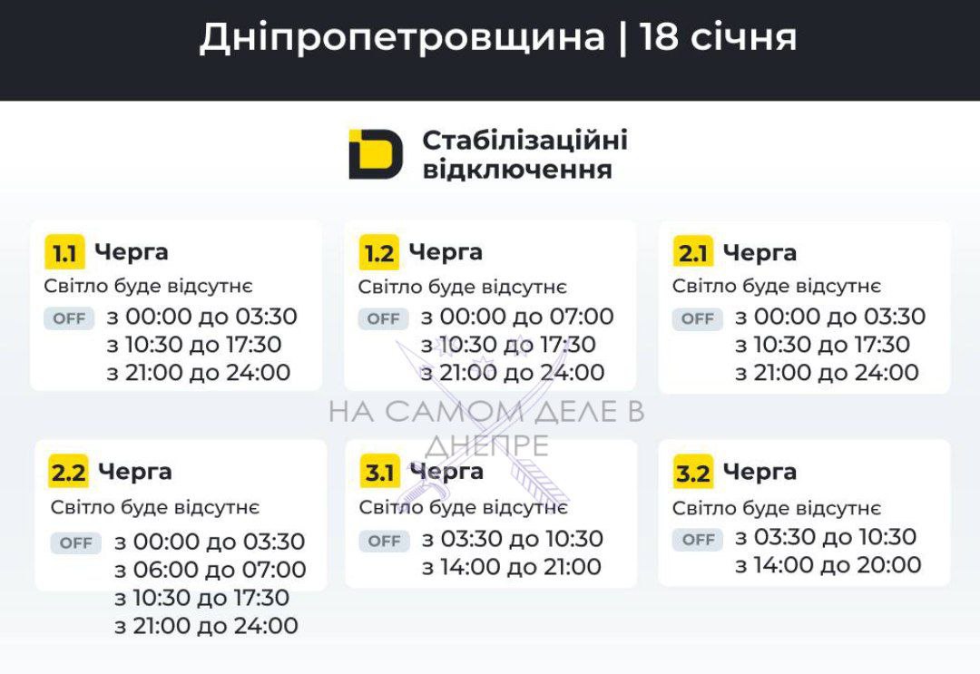 Заметим, что в течение дня время и объем графиков почасовых отключений света может меняться в зависимости от ситуации в энергосистеме.1.1 очередь:с 03:30 до 07: 00;с 10:30 до 17:30;с 21:00 до 24:00.1.2 очередь:с 03:30 до 07: 00;с 10:30...