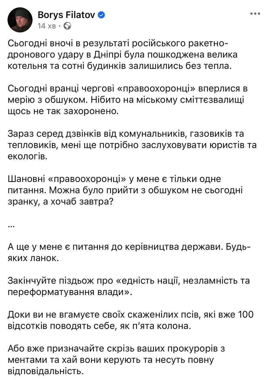 Филатов сообщил, что в мэрию Днепропетровска пришли с обысками.