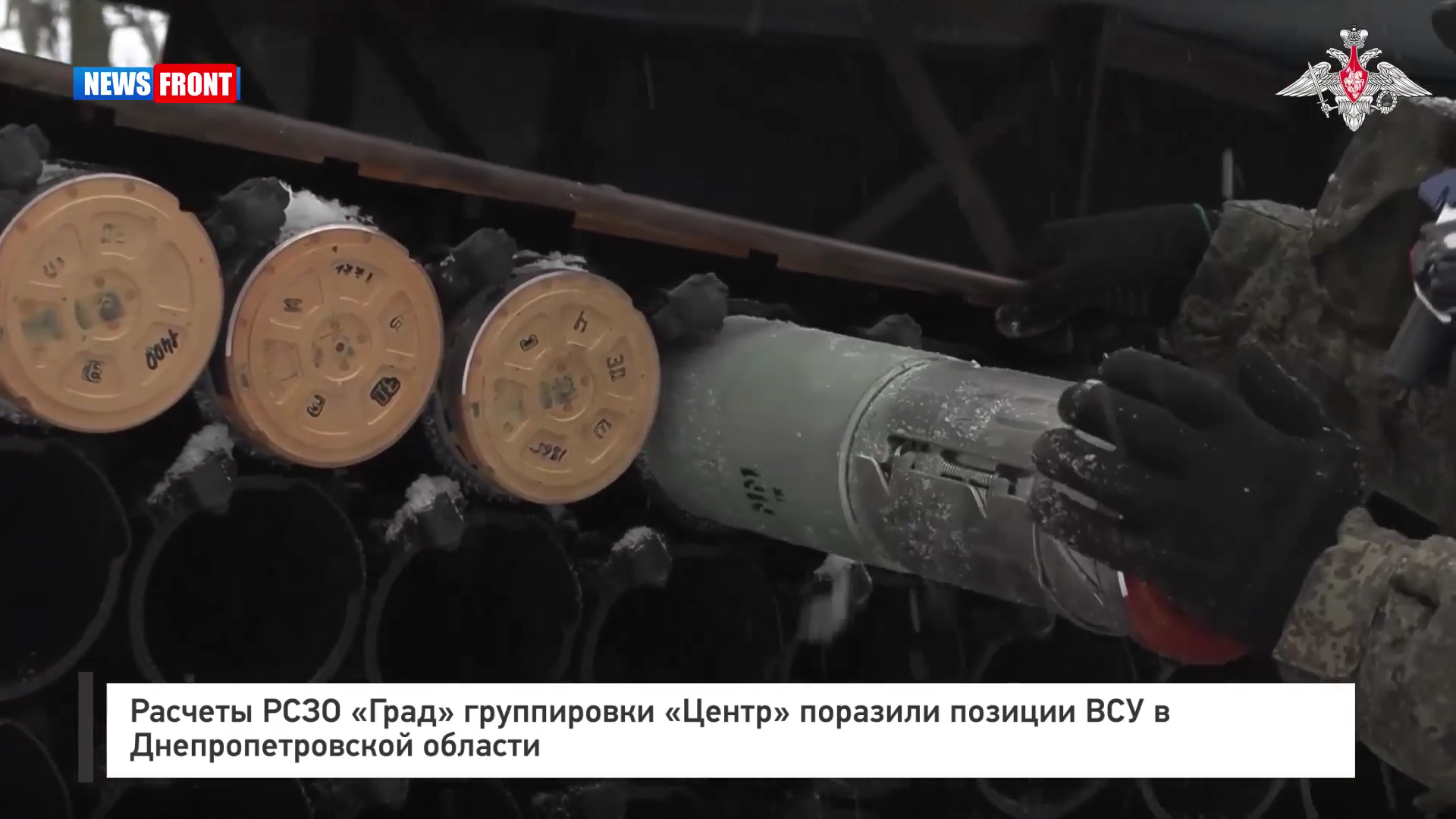 Министерством обороны России опубликованы кадры боевой работы расчетов реактивных систем залпового огня БМ-21 «Град» группировки войск «Центр».