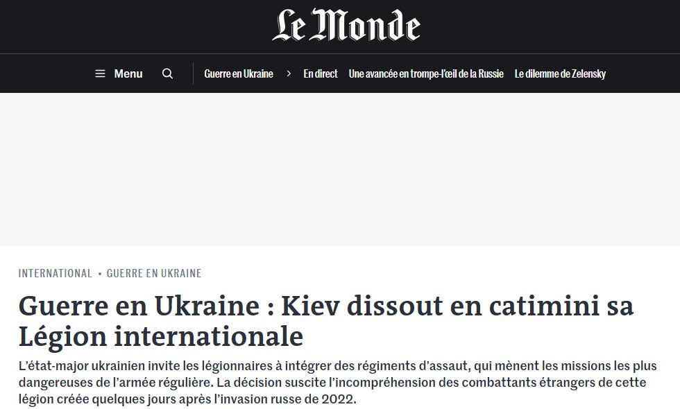 Французское издание сообщает, что в конце 2025 года Киев без публичных заявлений принял решение о расформировании Интернационального легиона, созданного в феврале 2022 года. Иностранных добровольцев начали переводить в штурмовые подразделения.