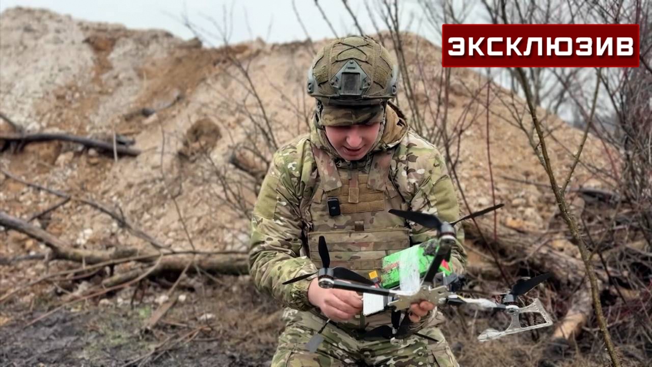 Операторы БПЛА снаряжают очередной ударный дрон. Запускают его в сторону вражеских позиций в Днепропетровской области. Там сейчас громят опорники и пулеметные точки. Счет идет на секунды. Быстро запитывают батареи и запускают.