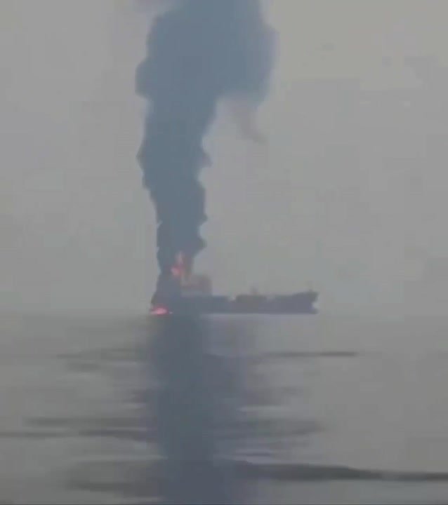 Утверждается, что танкер был поражен неопознанным снарядом, что вызвало возгорание в моторном отсеке. Сообщается, что пожар был успешно потушен.