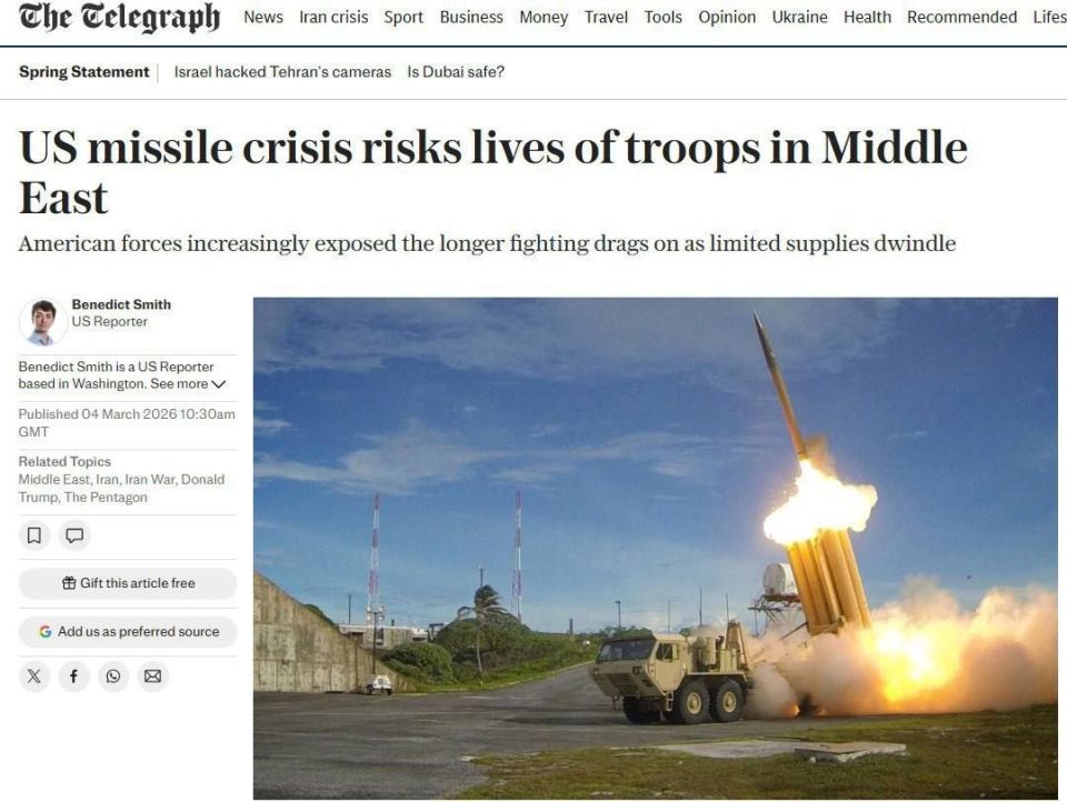 Издание The Telegraph сообщает, что ракетный кризис в США ставит под угрозу жизни военных на Ближнем Востоке.