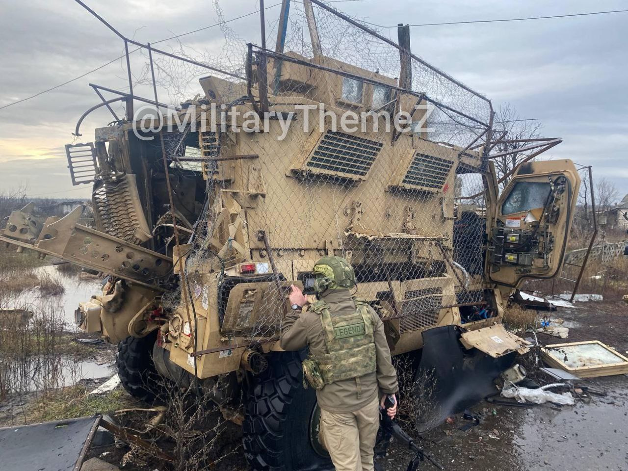 Повреждённый бронеавтомобиль International MaxxPro с мангалом ВСУ в Днепропетровской области.