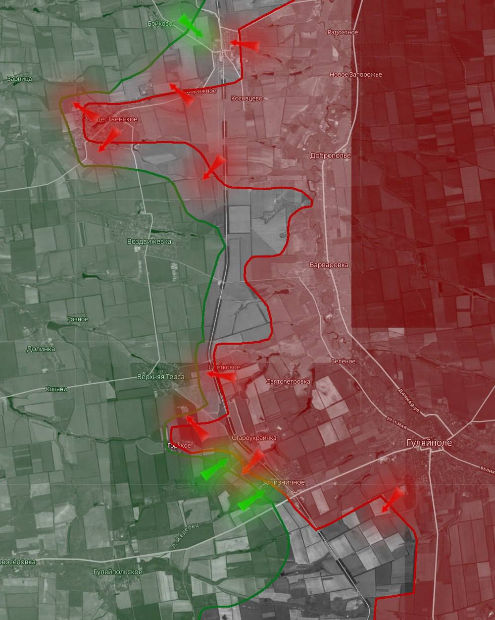 «На Днепропетровском направлении ВС РФ наступают в районах населенных пунктов Рождественка, Воздвижевка, Верхняя Терса, и Гуляйпольское.