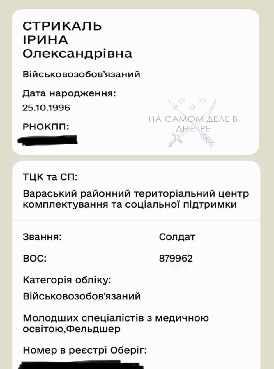 Она заявила, что её безосновательно поставили на военный учет в ТЦК Ровенской области. Женщина имеет образование по специальности "менеджмент", но в документах ей присвоили звание солдата и военную специальность фельдшера.