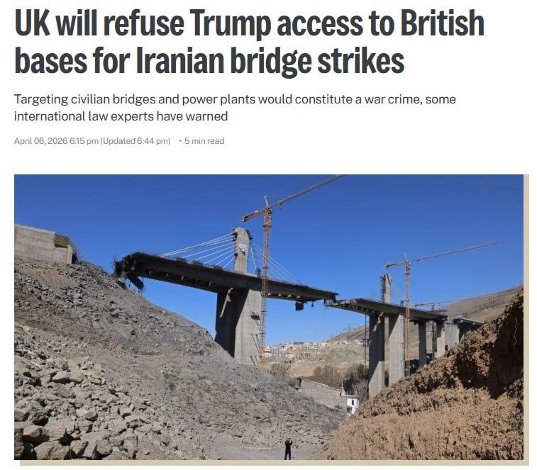 Лондон откажет Трампу в использовании авиабаз для нанесения ударов по иранским мостам и электростанциям.
