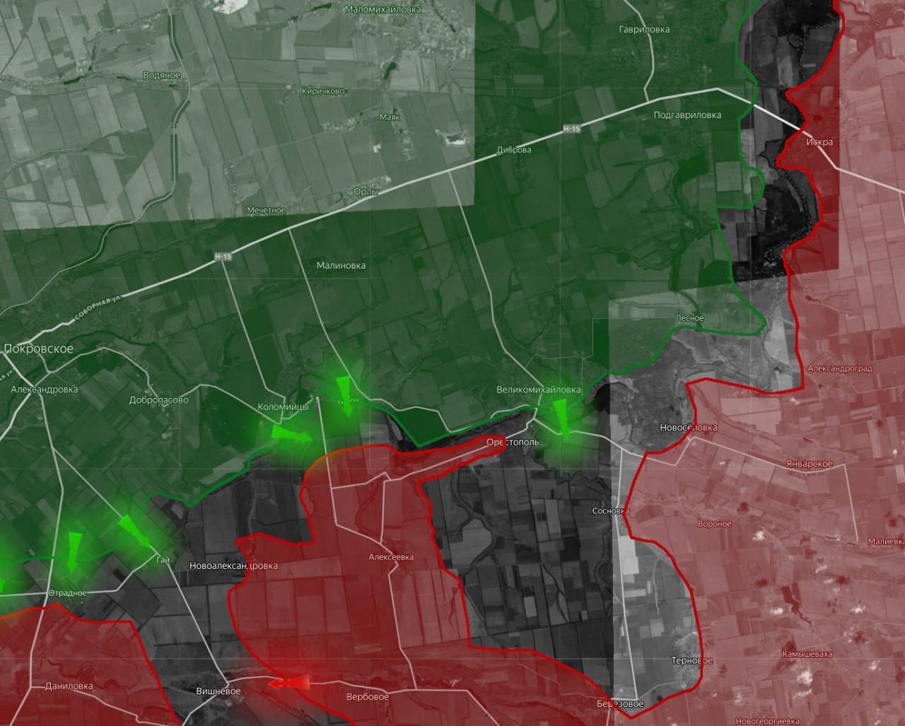 «На Днепропетровском направлении ВС РФ продвинулись северо-западнее населенного пункта Александроград. Идут ожесточенные бои в лесном массиве за рекой Волчьей.